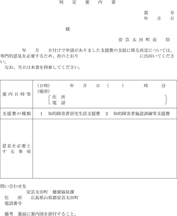 様式第1号)を更生相談所の長に送付するとともに、判定案内書(