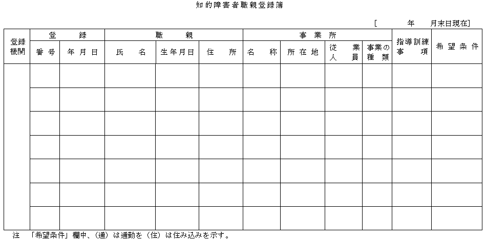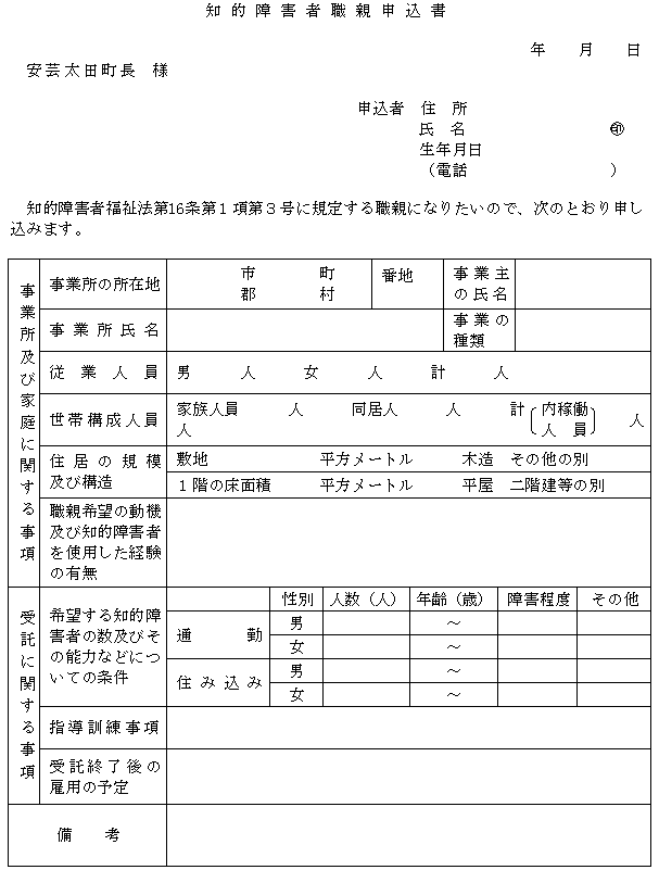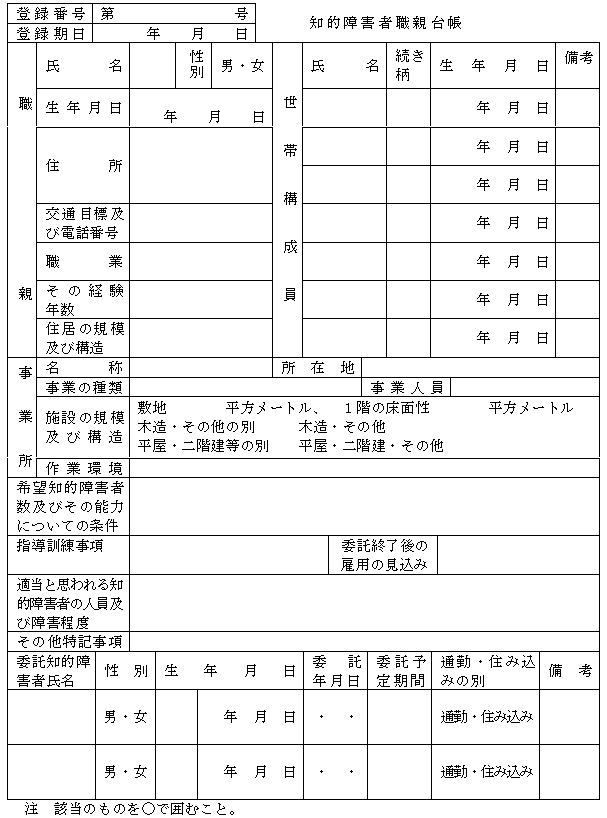 第3条 法第16条第1項第3号に規定する職親になることを希望する者は、知的障害者職親申込書(