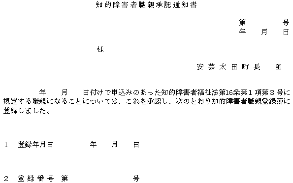 3 町長は、前項の認定により、適当と認めた者については、知的障害者職親承認通知書(