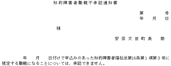 様式第4号)を、不適当と認めた者については、知的障害者職親不承認通知書(