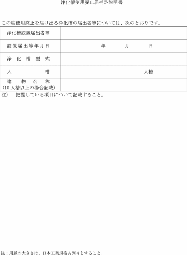 (4) 浄化槽使用廃止届の添付書類 浄化槽使用廃止届補足説明書(